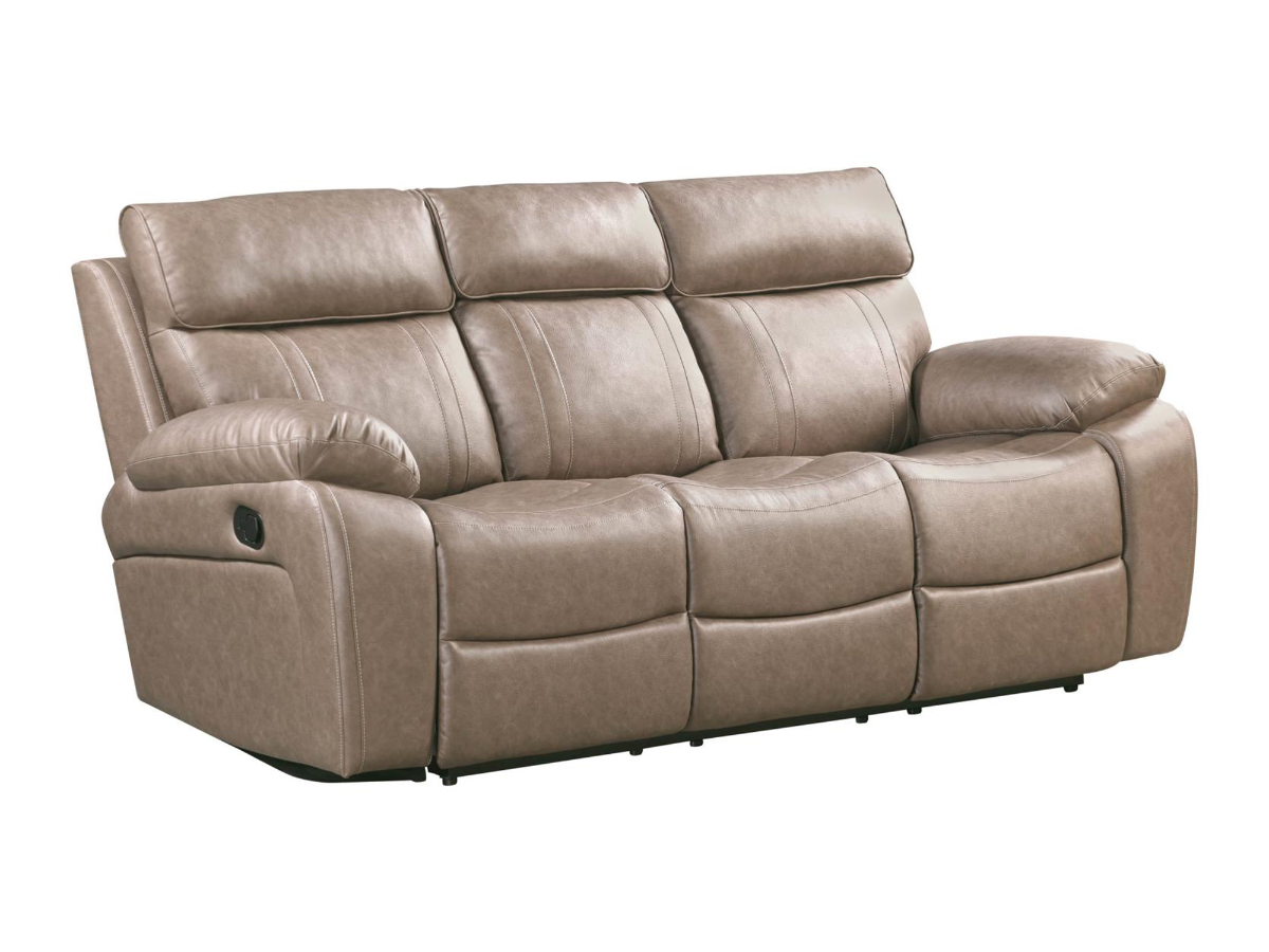 Built with generously scaled proportions, this manual reclining sofa features contoured bucket-style seating that supports your body in any position. The bustle-back pillow headrests offer added neck and head support, while the ultra-plush, fully padded arms provide a comfortable place to lean or rest. A convenient dropdown table in the center back includes two cupholders and a built-in power outlet with USB Type A and C ports, making it easy to charge devices and keep essentials within reach. Upholstered in a durable polyester-synthetic blend with the look of buffed leather, it is easy to maintain with simple wipe-clean care. The pull tab reclining mechanism allows for smooth operation, extending the footrest for full-body relaxation. Measuring 88 inches wide, 41.5 inches deep, and 40.5 inches high, it offers ample space without compromising comfort.