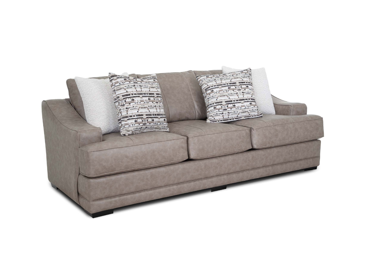 The Corbin Sofa brings a rich, leather-look aesthetic with the comfort and durability of high-performance fabric. Upholstered in a taupe gray-brown 100% polyester material that mimics the texture and feel of genuine leather, this stationary sofa offers a stylish and practical choice for everyday living. Its warm neutral tone blends seamlessly into a variety of décor styles, while four included throw pillows add softness and visual interest.Read More