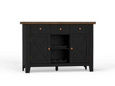 The County Server offers a beautiful blend of rustic charm and practical storage, making it a perfect addition to your dining room. Featuring a black painted body with a warm brown wood top, this server is crafted from solid rubberwood for strength and durability. The design showcases farmhouse-inspired x-framing on the front doors, adding a touch of visual interest and texture to the piece.Read More
