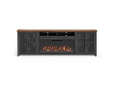 The Creed 96-Inch Fireplace TV Stand expands on the charming design of the original, offering even more space and presence for larger living rooms or entertainment areas. With its coastal cottage character and modern farmhouse appeal, this extra-wide console is finished in a striking Black and Whiskey two-tone and built from Poplar solids and Okoume veneers, complete with a Knotty Alder top. Measuring 96 inches across, it supports TVs up to 100 inches and features a wide profile that brings visual balance and functionality to spacious rooms.Read More