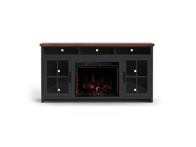 The Creed Fireplace TV Stand brings warmth and character to your living room with its charming blend of coastal cottage styling and modern farmhouse flair. Finished in a striking Black and Whiskey two-tone combination, this media console is crafted from Poplar solids and Okoume veneers with a Knotty Alder top for added rustic texture. Designed to support TVs up to 85 inches, it offers a stylish and functional way to refresh your entertainment space while providing cozy supplemental heat.Read More