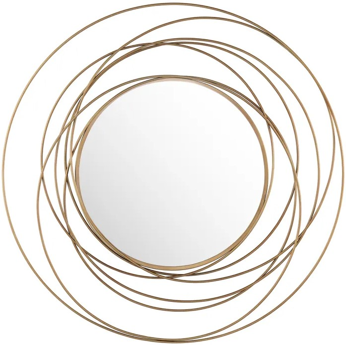 Crafted from high-quality metal, this mirror is not only durable but also has a beautiful bright gold finish that adds a touch of elegance and sophistication to your decor. The abstract circles around the mirror itself create a stunning focal point that is sure to grab the attention of anyone who enters the room. This mirror is not just a functional piece, but it's also a statement piece that will enhance the visual appeal of your interior. Hang it in your living room, bedroom, or hallway, and watch as it reflects light and creates an illusion of a bigger space.