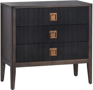 The Worthington 3-drawer chest in black exudes transitional elegance. Crafted with a lustrous black finish, it features three spacious drawers adorned with sleek metal handles, providing both style and practicality for classic interiors.Read More