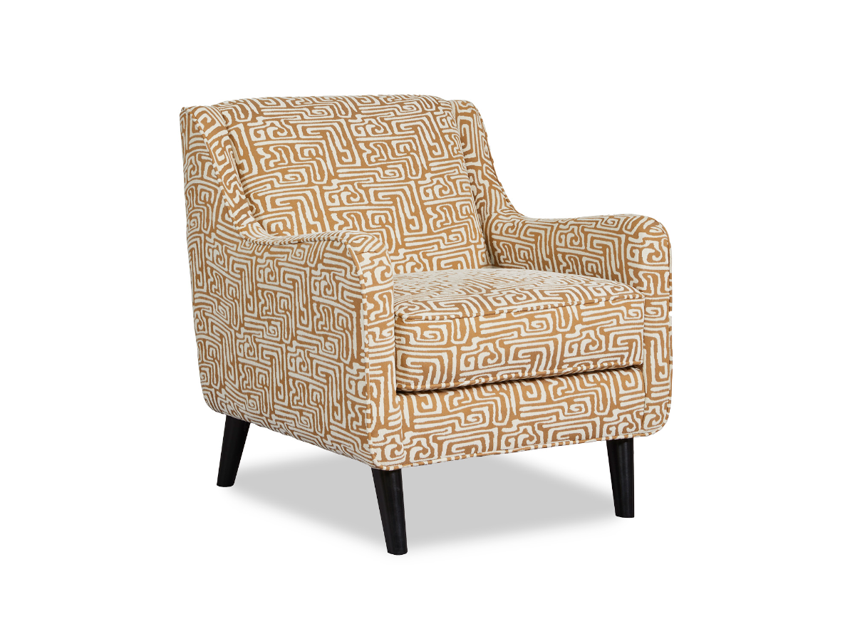 Elevate your living space with the elegant and stylish Dawson Accent Chair. This beautiful chair features a captivating golden and cream color palette that adds a touch of sophistication to any room. The chair showcases a unique lined, swirling pattern that some may describe as a kidney pattern, creating a visually stunning and dynamic look. Designed with both aesthetics and comfort in mind, the Dawson Accent Chair offers a cozy and inviting seating experience. Its plush cushioning and supportive armrests provide the perfect combination of comfort and relaxation. Whether you're curling up with a good book or entertaining guests, this chair offers a comfortable and stylish seating option. Crafted with attention to detail, the Dawson Accent Chair exudes quality and craftsmanship. Its sturdy construction ensures durability and longevity, allowing you to enjoy its beauty and comfort for years to come. The chair's sophisticated design makes it a versatile addition to various interior styles, from traditional to contemporary, adding a touch of elegance and charm. Enhance your living room, bedroom, or any other space with the Dawson Accent Chair. Its eye-catching golden and cream color scheme, along with its unique lined pattern, make it a standout piece that effortlessly blends with your existing décor. Experience comfort and style combined in this exquisite accent chair, and create a cozy and inviting atmosphere in your home.