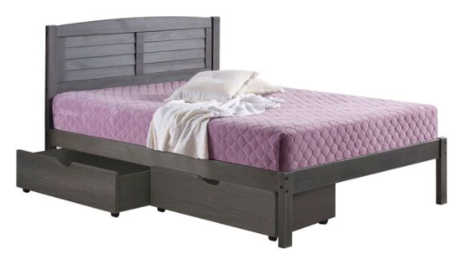 Our Louver platform bed is the perfect mix of contemporary and traditional build with an Antique Grey finish that easily matches your home decor. The solid pine wood is constructed to last for years. The included dual Under bed drawers add additional storage space while moving easily on caster wheels.Read More
