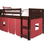 Circles low loft bed makes a small room fun, with large under bed area for storage or play. The Circles design can make a room easy to decorate and give it a warm inviting look. Red tent fabric makes a fun play area or the area below bed can be used to store things and red tent covers them up.Read More
