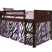 Circles low loft bed makes a small room fun, with large under bed area for storage or play. The Circles design can make a room easy to decorate and give it a warm inviting look. Zebra tent fabric makes a fun play area or the area below bed can be used to store things and zebra tent covers them up.Read More