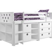 Circles low loft bed makes a small room fun, with large under bed area for storage or play. The Circles design can make a room easy to decorate and give it a warm inviting look. The 3-drawer chest, bookcase, and 2-drawer chest with shelf built in makes for a great use of a small space in the room.Read More