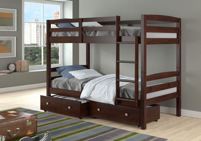 Our Twin over Twin bunk bed has an arch design that will add style to any room. The mattress-ready slat system fits all standard-size twin mattresses without the need for box springs. The included Dual under Bed drawers add additional storage space while moving easily on caster wheels.Read More