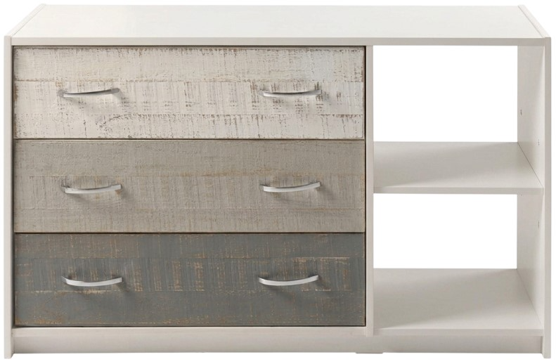 Keep any bedroom organized in style with a versatile three-drawer chest designed for everyday convenience. Its gray and white finish offers a clean look that complements any space. Built for durability and smooth operation, it provides ample storage for clothes and essentials while maintaining a neat, clutter-free environment.Read More