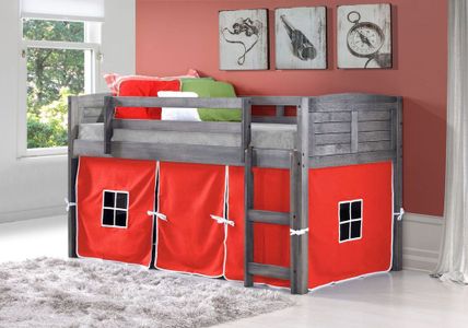 The louvered low loft bed makes a small room fun, with large under bed area for storage or play. The louvered design is timeless and can make a room easy to decorate and give it a warm inviting look. Red tent fabric can be used as a fun play area or to conceal storage.Read More
