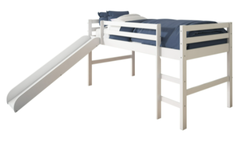 Transition your child from a toddler bed to an exciting twin low loft bed. The included slide makes it fun to get up in the morning. The warm light Espresso finish can easily match almost any decor. The bed is a great space saver in any child's bedroom, with a play area under the bed or open storage area.Read More