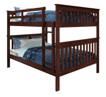 Full Over Full Mission Style bunkbed and the Cappuccino finish will add warmth to any bedroom. This bed comes with a mattress-ready slat system, so no Bunkie board is required. The included twin roll-out trundle is great for sleepovers or just keeping the clutter out from under the bed.Read More