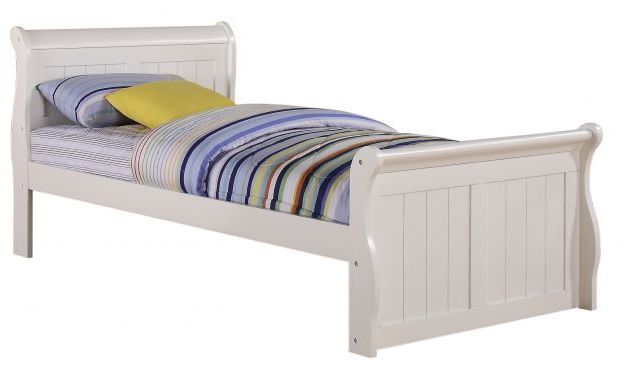Made with MDF and pine wood construction with sleigh headboard and footboard design in white color. Simple and yet easily matching with any furnitures design in the room. Available in twin and full. We carry a large selection of youth furniture; Bunk Beds, Stairway Bunk Beds, Captains Beds, Trundle Beds, Day Beds, & Platform Beds.