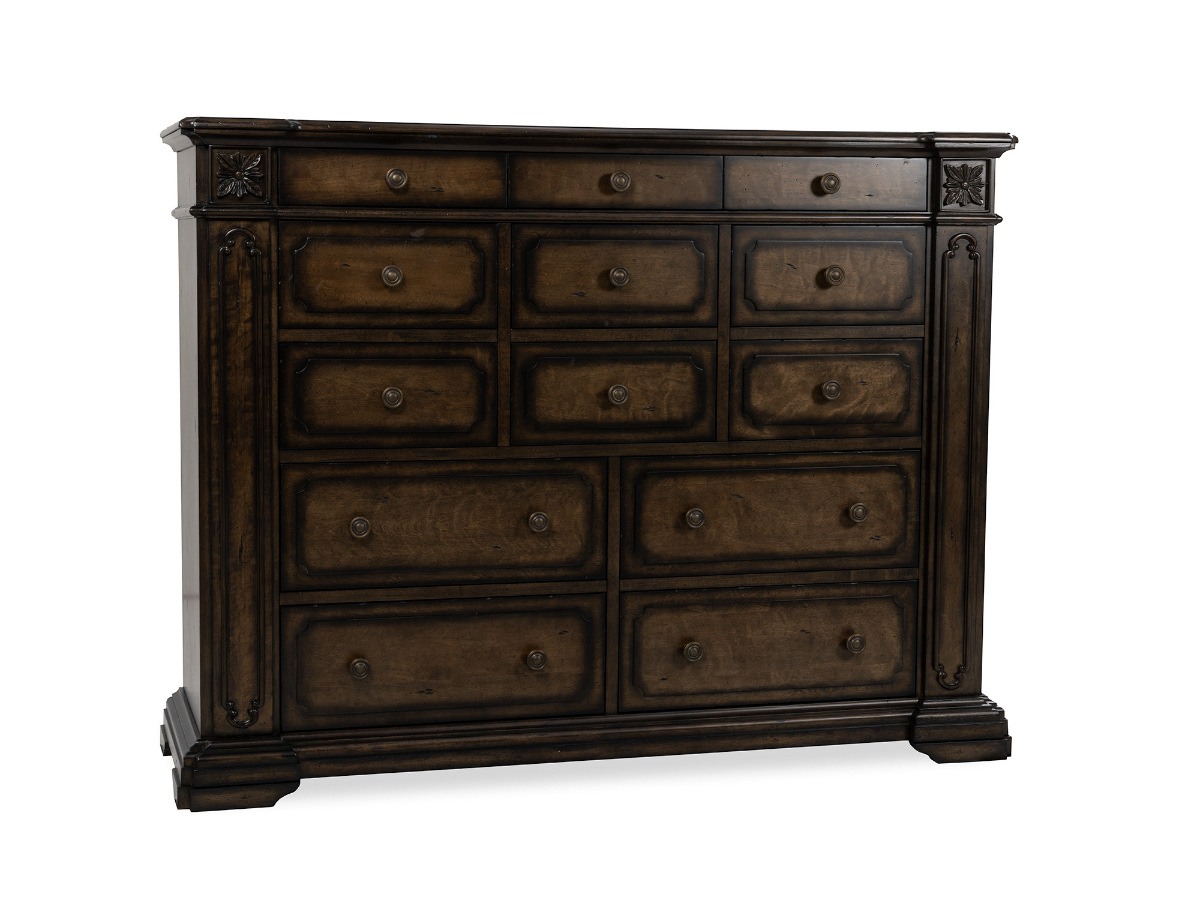 The Doral Gentleman’s Chest is a masterful blend of functionality and elegance. Constructed from acacia solids and veneers with a rich walnut finish, this chest offers an impressive 13 drawers for ample storage, making it ideal for organizing clothing, accessories, and more. Felt-lined drawers protect delicate items, while the ornate detailing adds a timeless, sophisticated touch. A standout piece for those who value both style and practicality, the Doral Gentleman’s Chest is perfect for elevating your bedroom decor.Read More