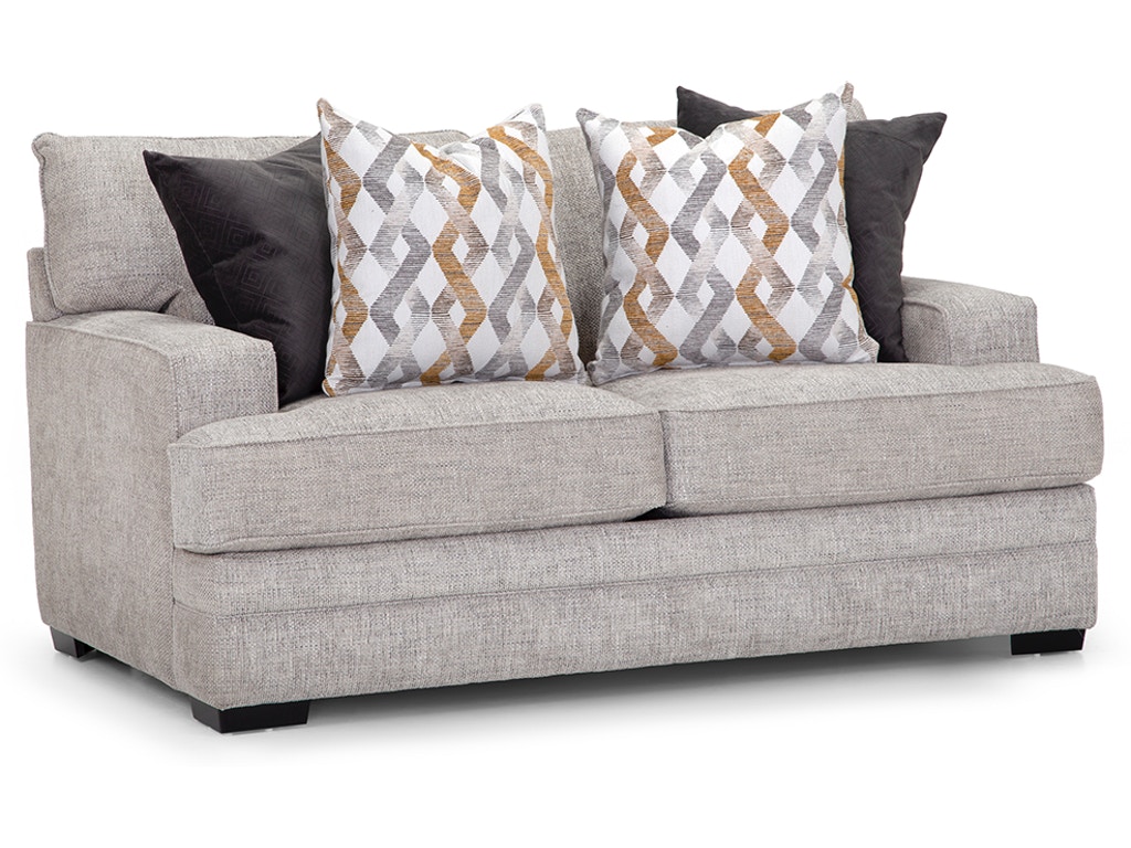 Indulge in the luxurious comfort and refined style of the Dove Loveseat—a pinnacle of high-quality craftsmanship made in the USA. This gray upholstered stationary loveseat is designed to enhance your living space with its enduring quality and sophisticated aesthetics. The fully reversible cushions, featuring Franklin's Forever Foam, ensure long-lasting durability and plush comfort. As a thoughtful addition, throw pillows are included with the Dove Loveseat, providing an extra layer of charm and coziness to your seating area. Elevate your home with this exquisite loveseat that seamlessly combines quality, comfort, and timeless design. Experience the epitome of relaxation and style with the Dove Loveseat as a centerpiece in your living room.