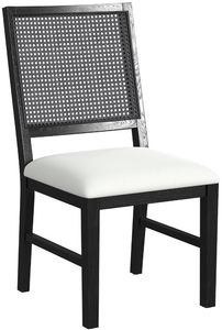 The Bahama Breeze dining chair is built with a solid wood frame and high-quality oak veneer. The chair back is decorated with a rattan inlay. The comfortably cushioned seat is upholstered in bright, white fabric that boldly contrasts the frame, while two stretchers are added to prevent racking.Read More