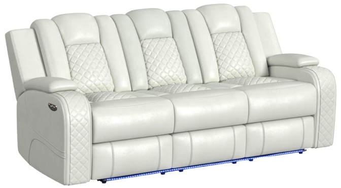 Hidden storage in both armrests is designed to keep your living room essentials conveniently within reach, while power ports in the dropdown table and LED underlighting adds modern practicality. For a sleek and comfortable addition to your living room, the Carlo Power Motion Sofa with Power Headrest in Pebble Oyster delivers.