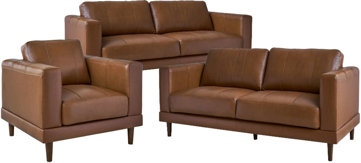 The Hampton 3-piece is a sleek addition for your office, living room, and more. Upholstered in Rich Leather with wooden tapered legs. It is The Perfect Mixture of Style and Comfort. Piped Seams Add A Touch Of Sophistication.Read More