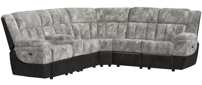 The Santorini 6-piece motion sectional is upholstered in a rich and inviting color, the plush fabric texture paired with generously cushioned seats. This piece is equipped with two cupholders and a storage console to prioritize convenience. To further this piece's appeal, seating with reclining functionality.Read More