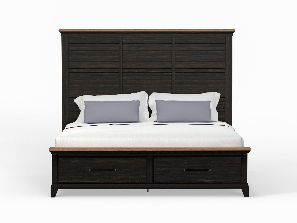The Espresso Bed offers the perfect blend of style and smart storage, making it a standout choice for a functional yet refined bedroom setup. Available in king or queen size, this bed features a rich espresso finish with warm contrasting tones on the tops of both the headboard and footboard for added depth and character. The paneled headboard brings in a traditional touch, while the low-profile footboard houses two built-in drawers for convenient, space-saving storage.Read More