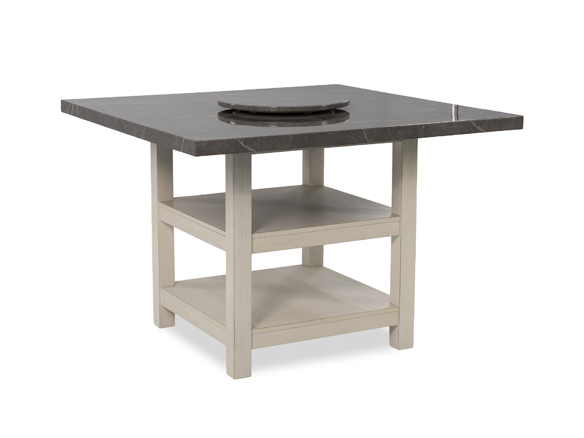 Designed with versatility in mind, the Evie Pub Table features built-in open shelves beneath the tabletop—ideal for storing dishes, drinkware, or décor within easy reach. A built-in lazy Susan in the center makes serving and sharing effortless, especially in a group setting. With its combination of practical storage, visual appeal, and compact footprint, the Evie Pub Table is a standout choice for everyday dining and casual gatherings alike.