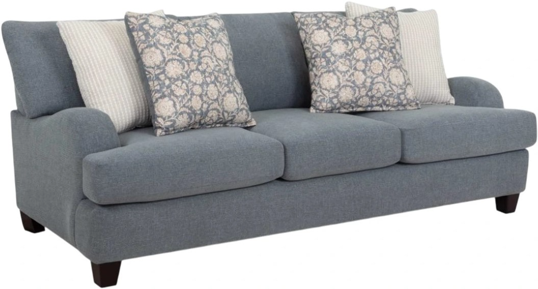 The 992 Laurel Sofa blends timeless elegance with everyday comfort. Upholstered in durable gray-blue fabric, it features coordinating throw pillows for warmth and style. Solid wooden legs add support and a refined finish, while the WOW Seating System and reversible cushions ensure lasting durability, versatility, and inviting relaxation.Read More