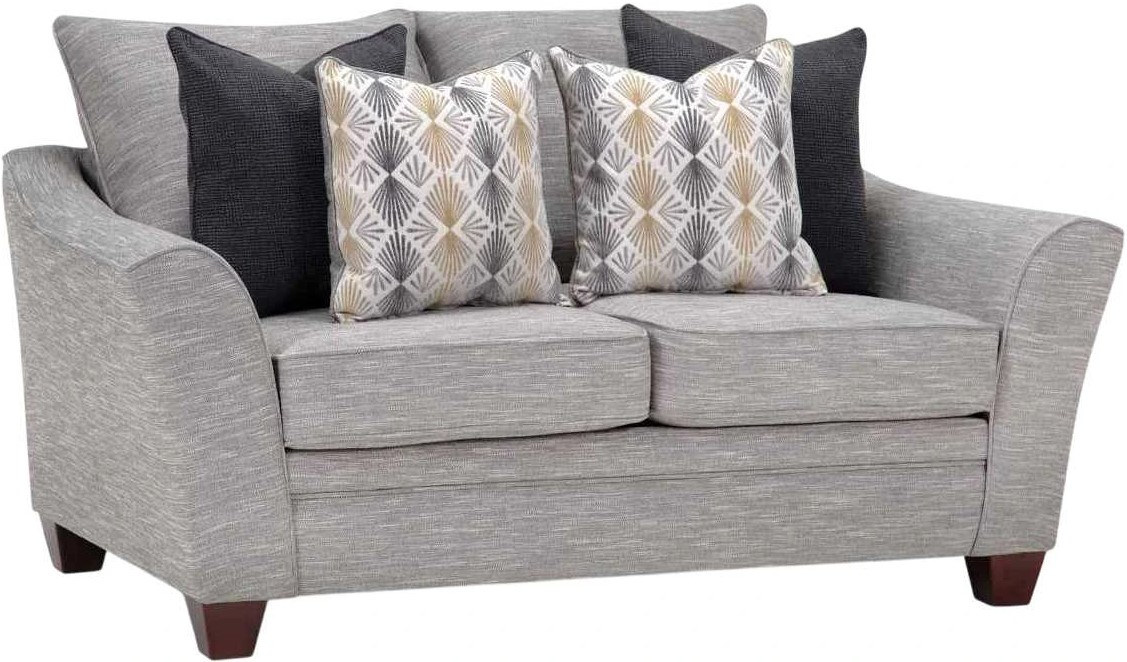 Experience a touch of “flare” with the meticulously crafted 910 Springer Collection. All pieces are upholstered in a soft, durable gray fabric that is contrasted with coordinating accent pillows. Flared arms add a contemporary element, while solid wooden legs provide increased durability.Read More
