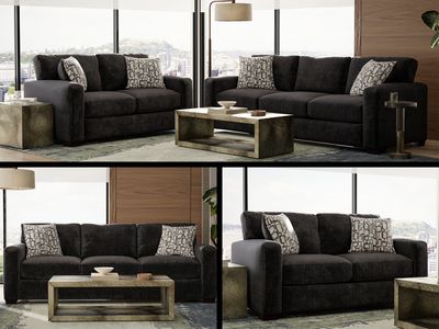 The Gayle Sofa and Loveseat Set offers a complete, modern seating solution with a focus on clean design and durable comfort. Upholstered in a charcoal 100% polyester fabric, both pieces feature a simple, squared silhouette and matching square arms that complement a wide range of interior styles. Each piece includes two accent pillows with a bold geometric pattern in shades of grey and white, adding just the right amount of visual interest to the set’s sleek, understated design.Read More