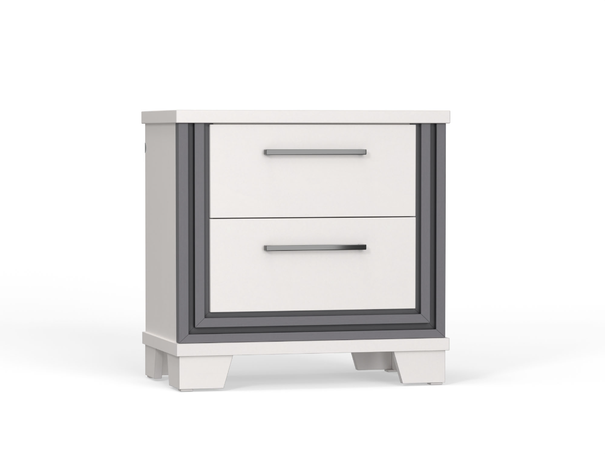 With two spacious drawers, the Glam Nightstand offers practical storage for keeping essentials close at hand, while sleek silver hardware adds a polished finishing touch. Designed to pair perfectly with the Glam Bed and Dresser, this nightstand combines everyday functionality with contemporary flair, making it a stylish and versatile addition to your bedroom.