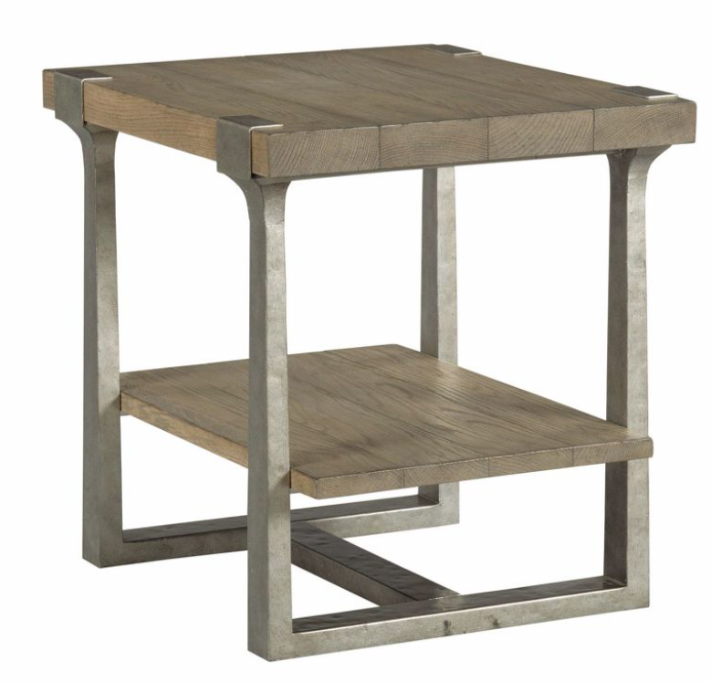 The Timber Forge Rectangular End Table has a metal base that is aged Natural Silver in color, and the top is wood with Oak veneers. Some assembly is required. Compact yet functional, it offers a sturdy surface for essentials while enhancing any living space with practical design and contemporary charm.Read More
