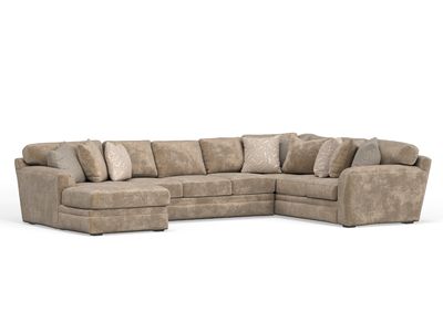 Built for lasting comfort, the Hannah sectional features extra deep seating with fully padded sides and back, creating a plush and supportive lounging experience. D-rings secure the seat cushions to the frame, ensuring everything stays in place even with daily use. Down-accented pillows add an extra layer of luxury and softness. Perfect for movie nights or hosting guests, this three-piece sectional brings comfort and sophistication together in one beautiful package.