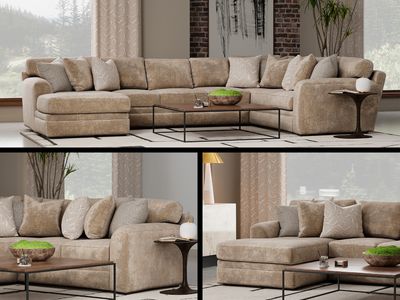 The Hannah 3 Piece Sectional is designed for comfort-forward living with its spacious layout and deep, inviting seating. Upholstered in a soft, textured light brown 100% polyester fabric, this sectional includes a built-in chaise for lounging and relaxing in style. Its transitional design blends easily with a variety of décor, offering both a cozy feel and clean, modern lines.Read More