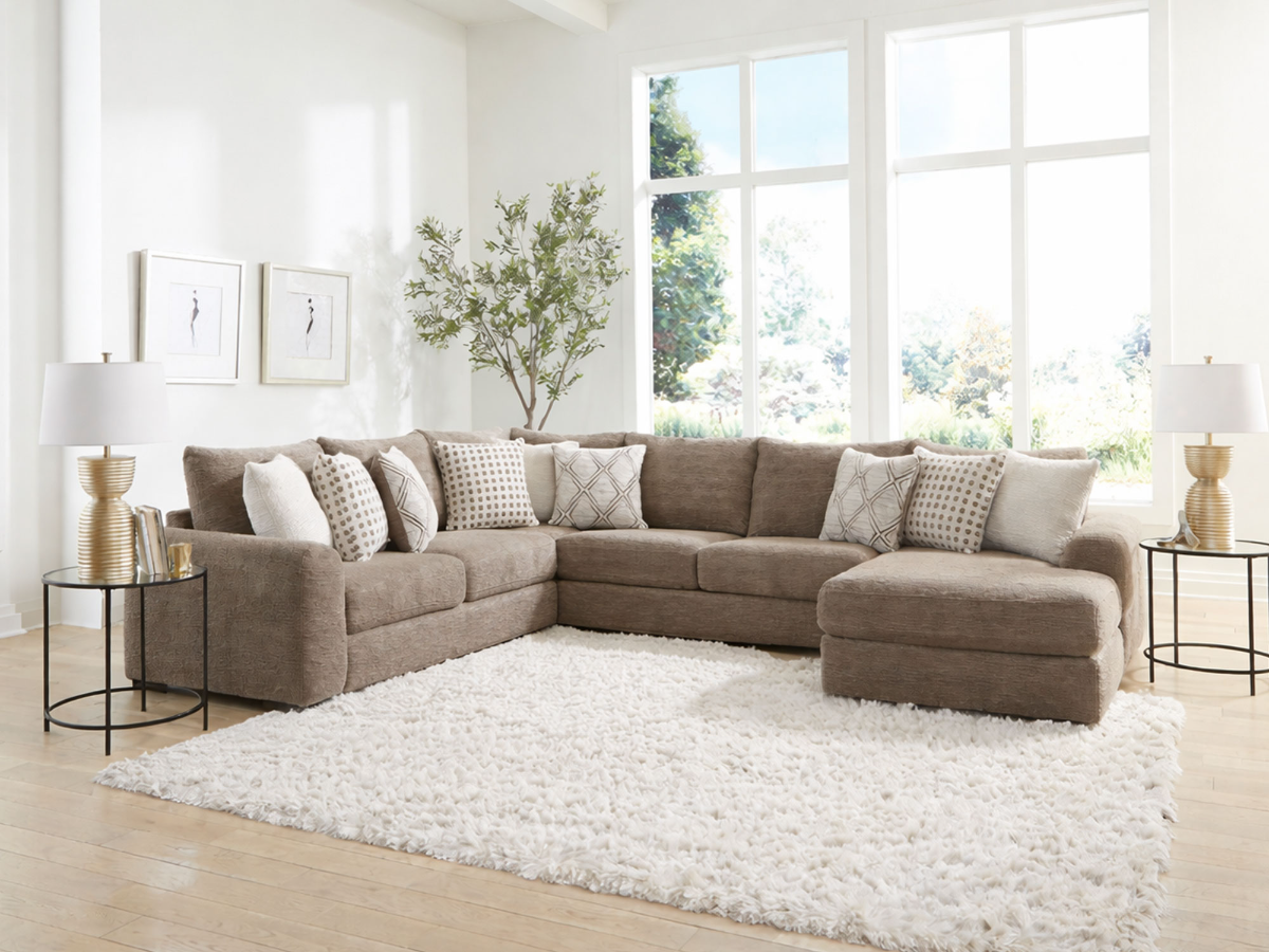 The Henry 3 Piece Sectional delivers spacious seating and relaxed comfort with a clean, modern design. This U-shaped sectional is upholstered in a soft, light brown textured fabric that complements a wide range of interiors, from casual to contemporary. Reversible seat and back cushions add versatility and help maintain a fresh look over time, while the deep seating layout makes it ideal for lounging, entertaining, or family movie nights.Read More