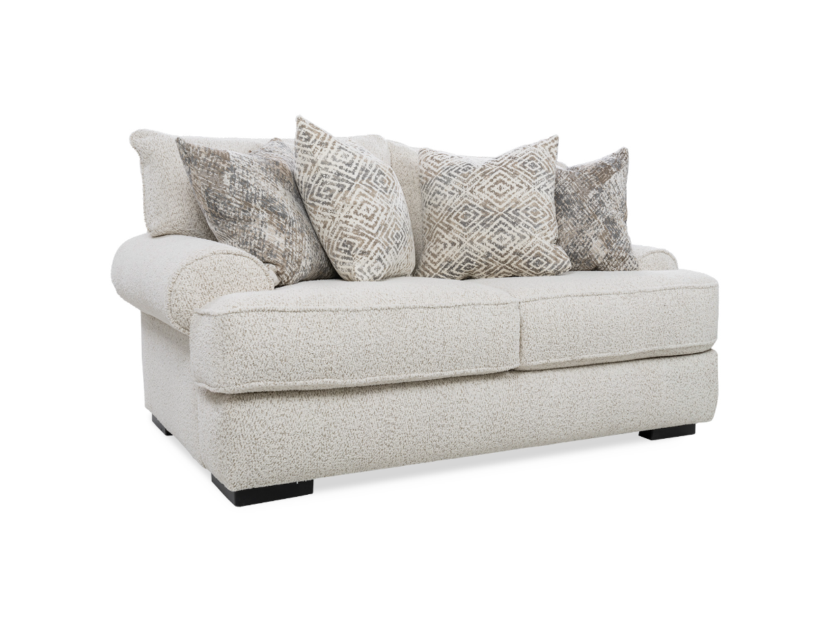 Introducing the Juniper Loveseat, a perfect blend of style and comfort. This casual transitional loveseat features a 2-cushion frame with rolled arms, creating a timeless and inviting look. Crafted with a durable construction of red oak solids and commercial grade sinuous coils, this loveseat offers long-lasting support and stability. The Juniper Loveseat comes with throw pillows filled with luxurious down, adding an extra level of comfort and luxury to your seating experience. Whether you're snuggled up with a loved one or enjoying some solo relaxation time, the Juniper Loveseat provides the perfect combination of style and comfort. Upgrade your living space with this fashionable and durable loveseat that is sure to stand the test of time.Read More