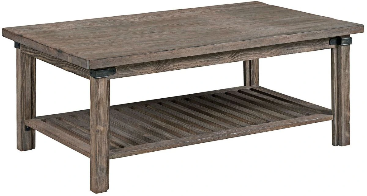 Simple, form follows function design highlights the wire-brushed solid Norwegian Spruce on this coffee table. A perfect coffee table for active family rooms where the solid wood and a casual antiqued finish can roll with the punches.Read More