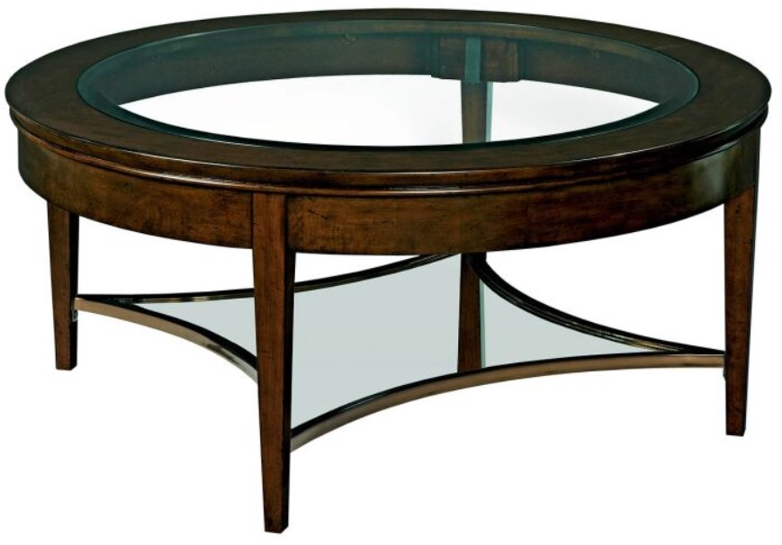 A complete different living room option, the round Aura glass cocktail table has two tiers of glass with subtle metal trim. The shape makes it a great option for everything from medium sized sofas to sectional designs.Read More