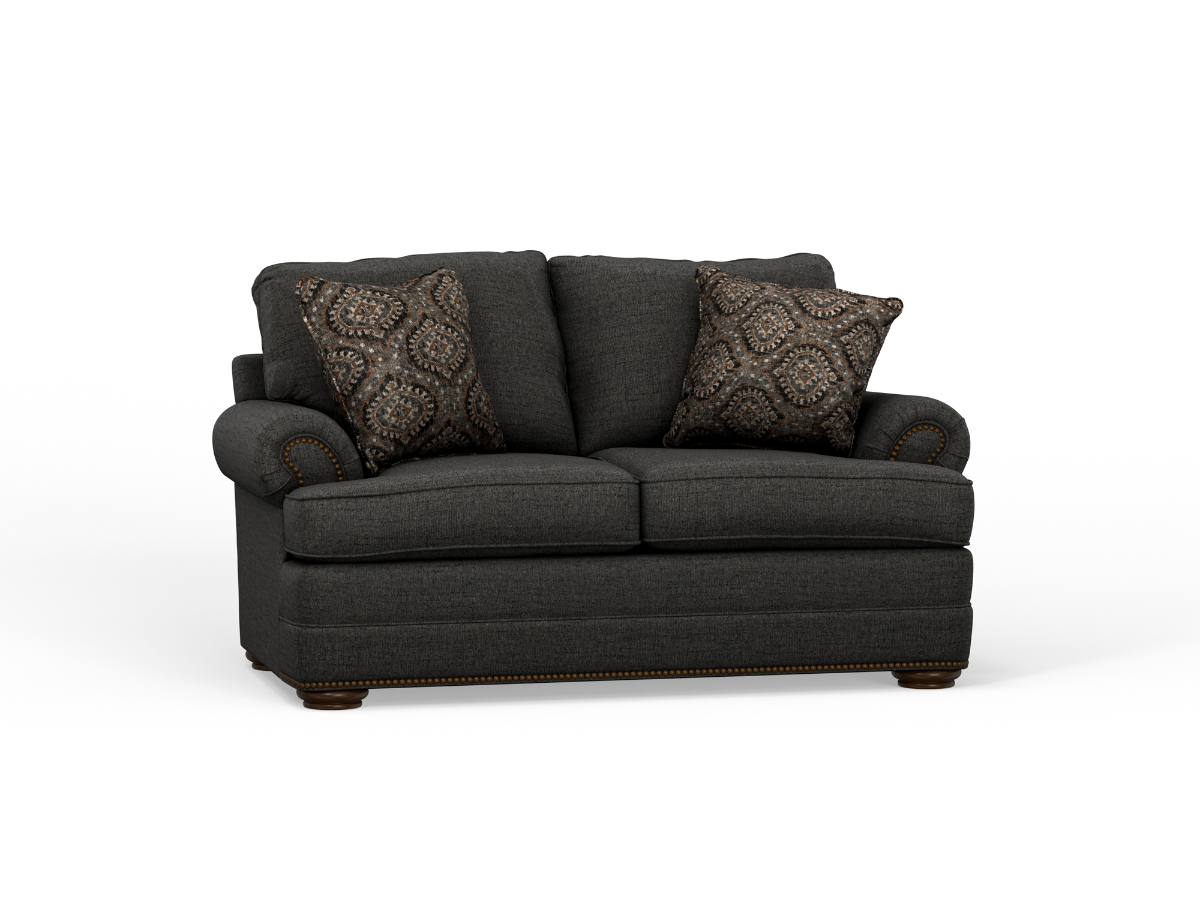 The Kirsten Loveseat brings timeless comfort and traditional elegance to your living space. Upholstered in a soft grey 100 percent polyester chenille fabric, this loveseat features a rich texture and durable feel that’s perfect for everyday use. Classic design elements like rolled arms with detailed nailhead trim, bun feet, and T-cushion seating give it a refined look that fits seamlessly into traditional or transitional spaces.Read More
