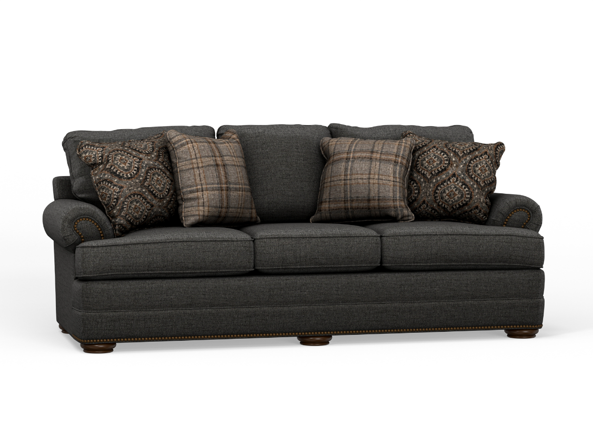 Four included throw pillows add comfort and decorative flair, creating a warm and inviting space perfect for relaxing or entertaining. The Kirsten Sofa’s durable construction and refined styling make it a great centerpiece for any room that leans classic, transitional, or cozy traditional in design.