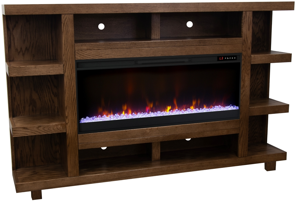The Laurel Canyon 72-inch fireplace mantel delivers the perfect blend of modern, urban style with rustic tranquility. Skillfully crafted from oak solids and veneers, this robust mantel with electric fireplace is available in your choice of three finish options and features unique, open-ended shelving.Read More