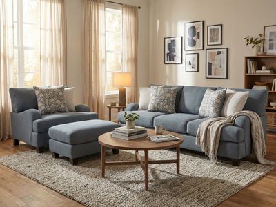 The Lucille Sofa, Chair and a Half, and Ottoman Set combines elegance, comfort, and functionality in a beautifully coordinated living room collection. Featuring a soft gray 100% polyester fabric, this set offers a neutral palette that complements a variety of décor styles, from traditional to transitional. Gently curved arms and a tailored silhouette provide a timeless appeal, while included throw pillows in floral and textured patterns add a refined decorative touch. This trio offers the perfect balance of spacious seating and versatile functionality, ideal for relaxing or entertaining.Read More