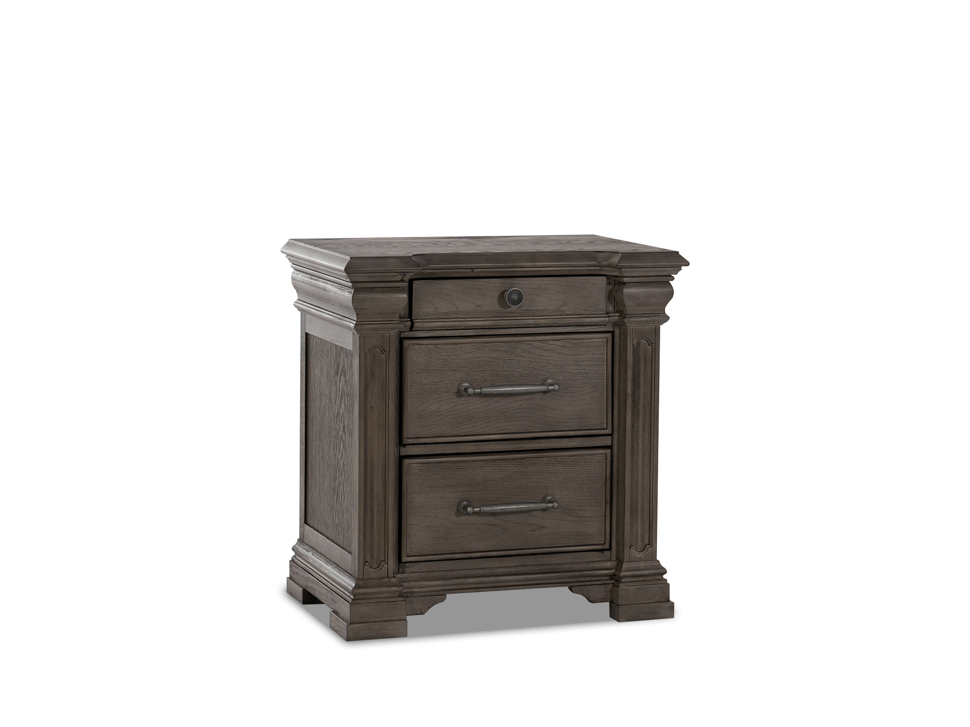The Mansion Nightstand is a refined and functional bedside companion constructed with attention to detail and style. Crafted from hardwood solids and birch veneers, it is finished in a transparent grey tone that brings a contemporary touch to your bedroom decor.The pilasters with framed drawers showcase intricate detailing, adding an extra layer of sophistication to the nightstand's design. The drawers, featuring dovetailed construction, are fully finished and equipped with ball-bearing side glides for smooth and effortless operation.With three drawers, the Mansion Nightstand provides convenient storage space for your nighttime essentials, ensuring that everything you need is within reach. Elevate the elegance of your bedroom with this thoughtfully designed and well-crafted nightstand.Read More
