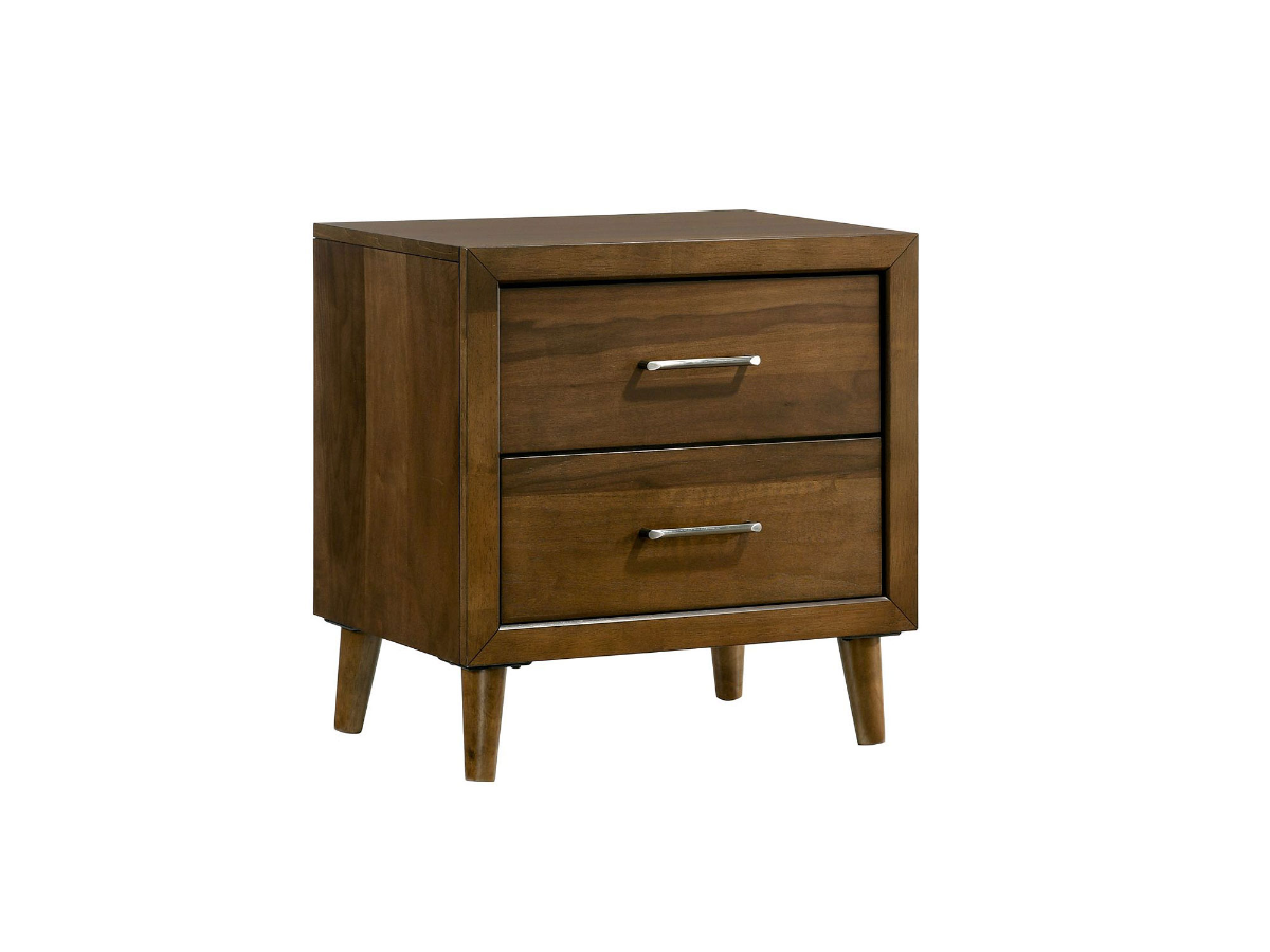 The Maxwell Nightstand brings mid-century modern style and practical storage to any youth bedroom. Finished in a warm brown walnut tone, this two-drawer nightstand showcases the natural wood grain for added texture and character.Read More