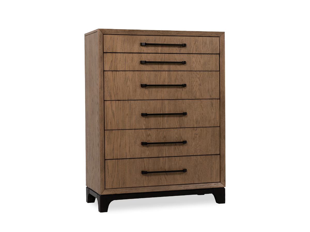 With six spacious drawers, the Meade Chest delivers organized storage for clothing and essentials. The top drawers are felt-lined to safely store delicate items, while the bottom drawers are cedar-lined to keep garments fresh. Built with durability and everyday function in mind, this chest is the perfect addition to your bedroom, whether you're completing the full Meade collection or looking for a standout storage piece.