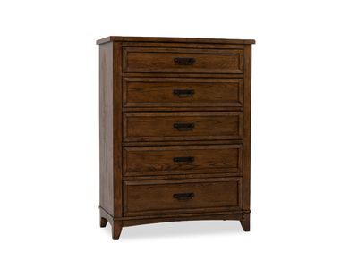 The Meridian Chest is a stylish storage solution that combines clean design with warm, natural appeal. Finished in a rich honey tone, this chest is crafted from oak solids and veneers, bringing durability and beauty to your bedroom. Its simple silhouette and black hardware provide a modern contrast to the wood's natural grain, making it a versatile piece that complements both contemporary and traditional decor. With five spacious drawers, the Meridian Chest offers ample room to keep your wardrobe organized and your space clutter-free.Read More