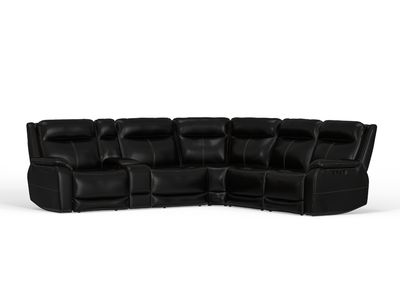 The Mora 6 Piece Leather Sectional is a luxurious and feature-rich seating solution built for comfort, performance, and sleek style. Wrapped in premium black top grain leather with a vinyl match on the sides and back, this sectional offers a polished, upscale look with durable construction. Designed with triple power reclining functionality, it includes zero gravity recline, adjustable headrests, and footrest extensions for full-body support. The steel seat box enhances stability, while hidden cupholders and a storage console add smart convenience.Read More