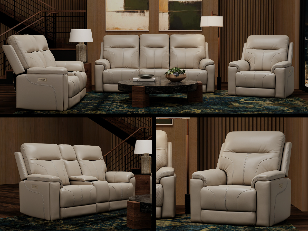 Each piece features hidden cupholders, storage, and tech integration