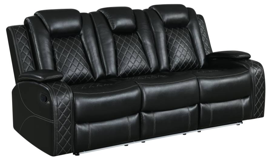 Sofa includes storage arms, drop down center sofa back, drink tray with lift up reading light bar, wireless charger, theater lighting on the sofa