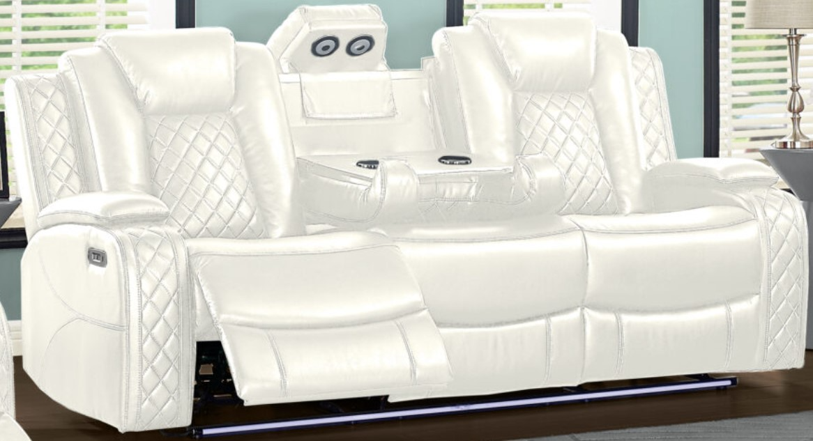 Made from a combination of 80% polyester and 20% faux leather, the Orion Motion Collection is upholstered in either black or white, giving you a choice to match your decor. The collection features storage arms, a drop down center sofa back drink tray with a lift up light bar, and a wireless charger, making it convenient and practical for any space.