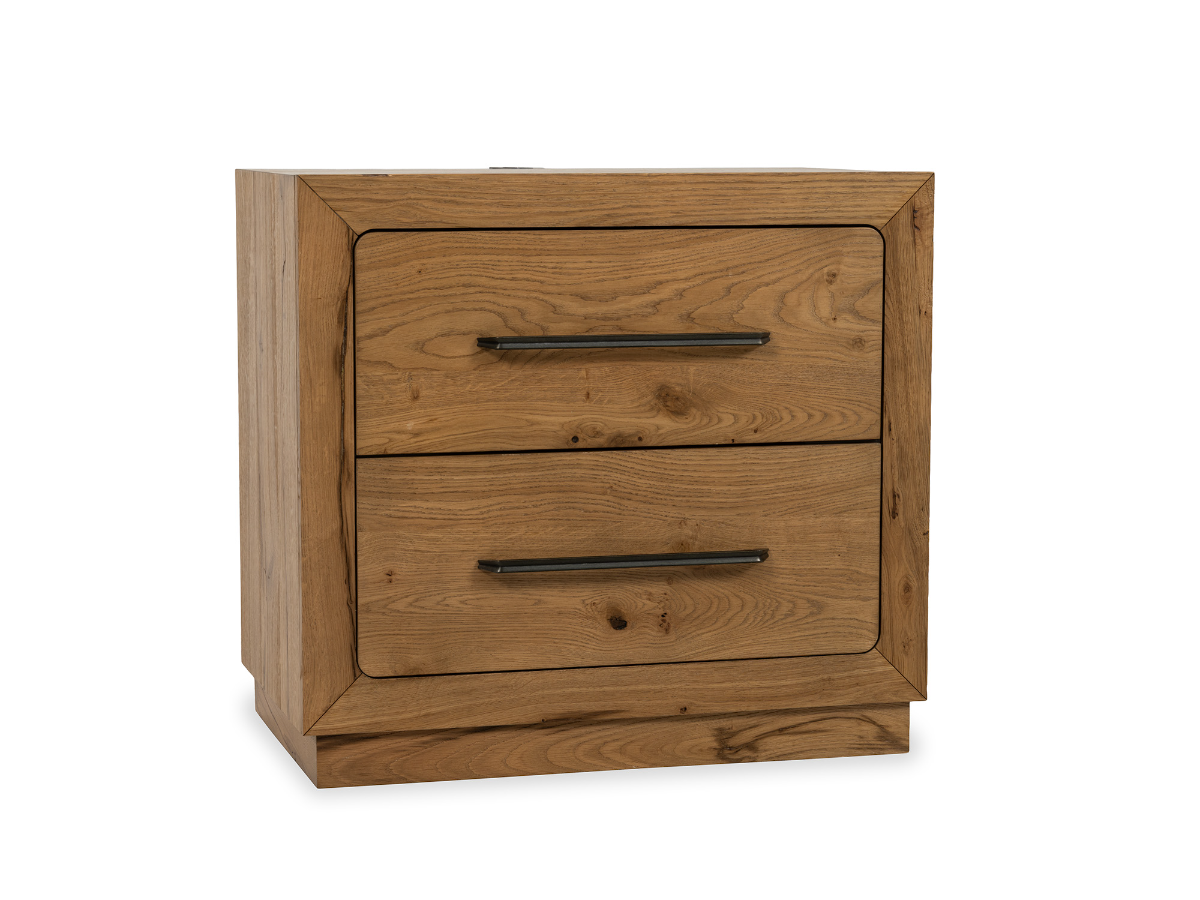 Beyond its good looks, the Oakley Nightstand is packed with thoughtful features. The top drawer includes a soft-touch felt lining, ideal for protecting delicate items like watches or jewelry, while the bottom drawer is cedar-lined to keep clothing and linens fresh. For modern convenience, USB Type A and C ports are built into the back of the nightstand, allowing easy charging of devices without cluttering your nightstand surface. With its mix of form, function, and rustic character, the Oakley Nightstand is a versatile piece that brings both warmth and utility to your bedroom.